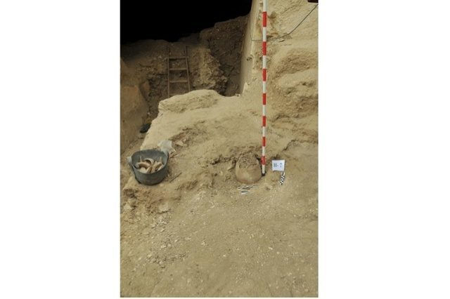 Posteriormente Ahmed ha localizado una jarra de boca ancha; puede tratarse de un enterramiento infantil ya que ha aparecido al lado del fuego.
